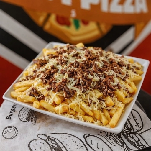 2 X-burguer + 300g de batata com cheddar + bacon e calabresa acebolada